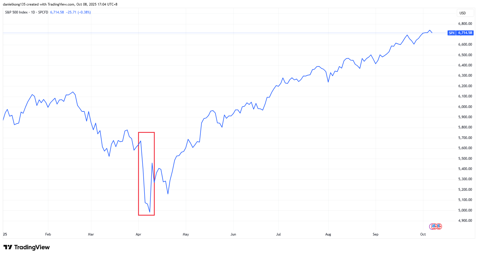 Remember April’s “Liberation Day” tariffs? Markets panicked and sold off. The S&P 500 Index plunged below 5,000, while headlines screamed “Trade War 2.0,” and sentiment turned sour. But within weeks, the sell-off faded as liquidity rushed back.
