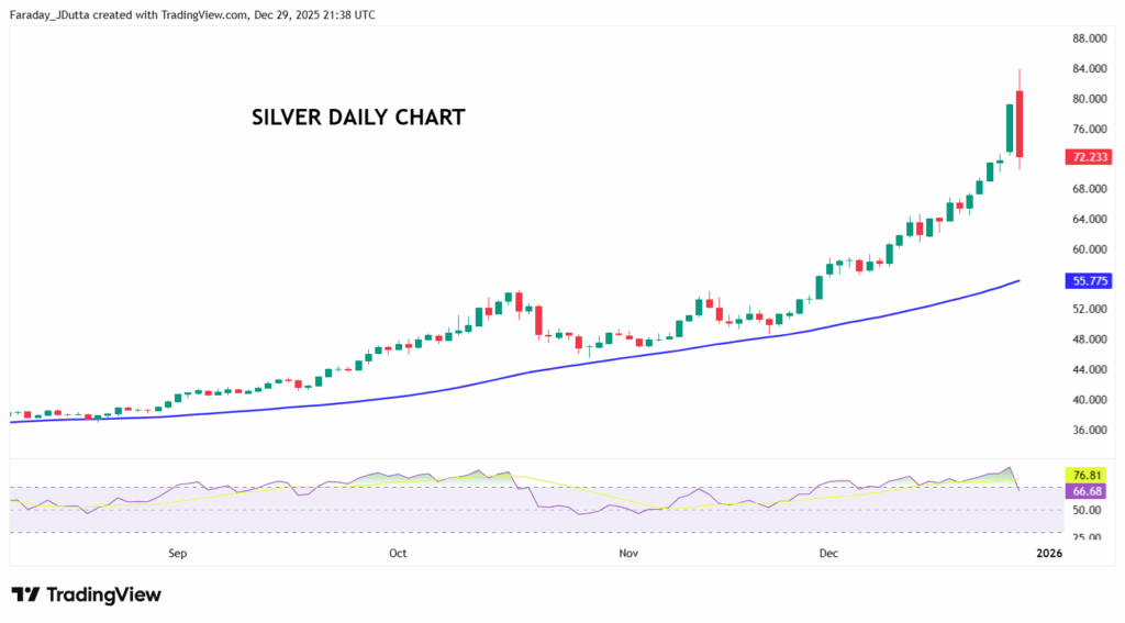 Precious metals have been a tear with broader demand supported by central buying and more recently by momentum chasing hedge funds and retail investors. For example, platinum recently reached a record high over $2,300 per ounce due to tight supply and strong demand, marking the tenth straight session of gains and a 150% increase this year, the largest since at least 1987. Silver too has enjoyed similarly stellar gains in 2025 – a hybrid trade which acts as both a precious metal and industrial input. It can also leverage on gold rallies but with higher volatility. Solar and electronics demand supports the long-term bull case. But recent parabolic price action and a bearish engulfing candle yesterday warn of a pullback and correction.