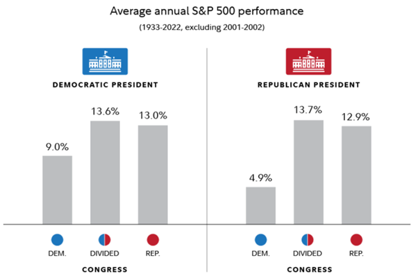 从历史上看,美国市场在国会分裂的情况下表现最佳。无论总统是民主党还是共和党,情况都是如此。