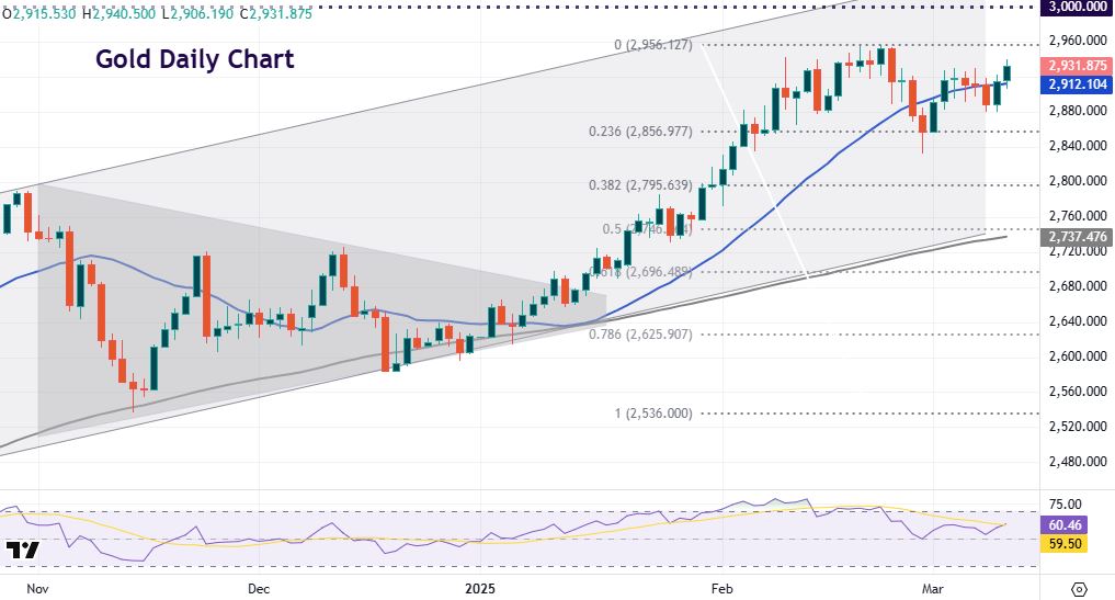 Meanwhile, central banks will continue to buy gold as geopolitical tensions and a difficult economic environment increase demand for haven assets. For example, the People’s Bank of China (PBoC) increased gold reserves for a third consecutive month. Gold is already up around 11.5% year-to-date, establishing a series of consecutive record highs along the way in a long-term ascending channel. Prices have been relatively quiet recently, having found support at the first minor Fib retracement level at $2856. They are currently pushing above the 21-day SMA at $2911. This could be the start of a bullish break from consoldiation ahead of a move to the record high at $2956 and then the key physchological $3000 mark.