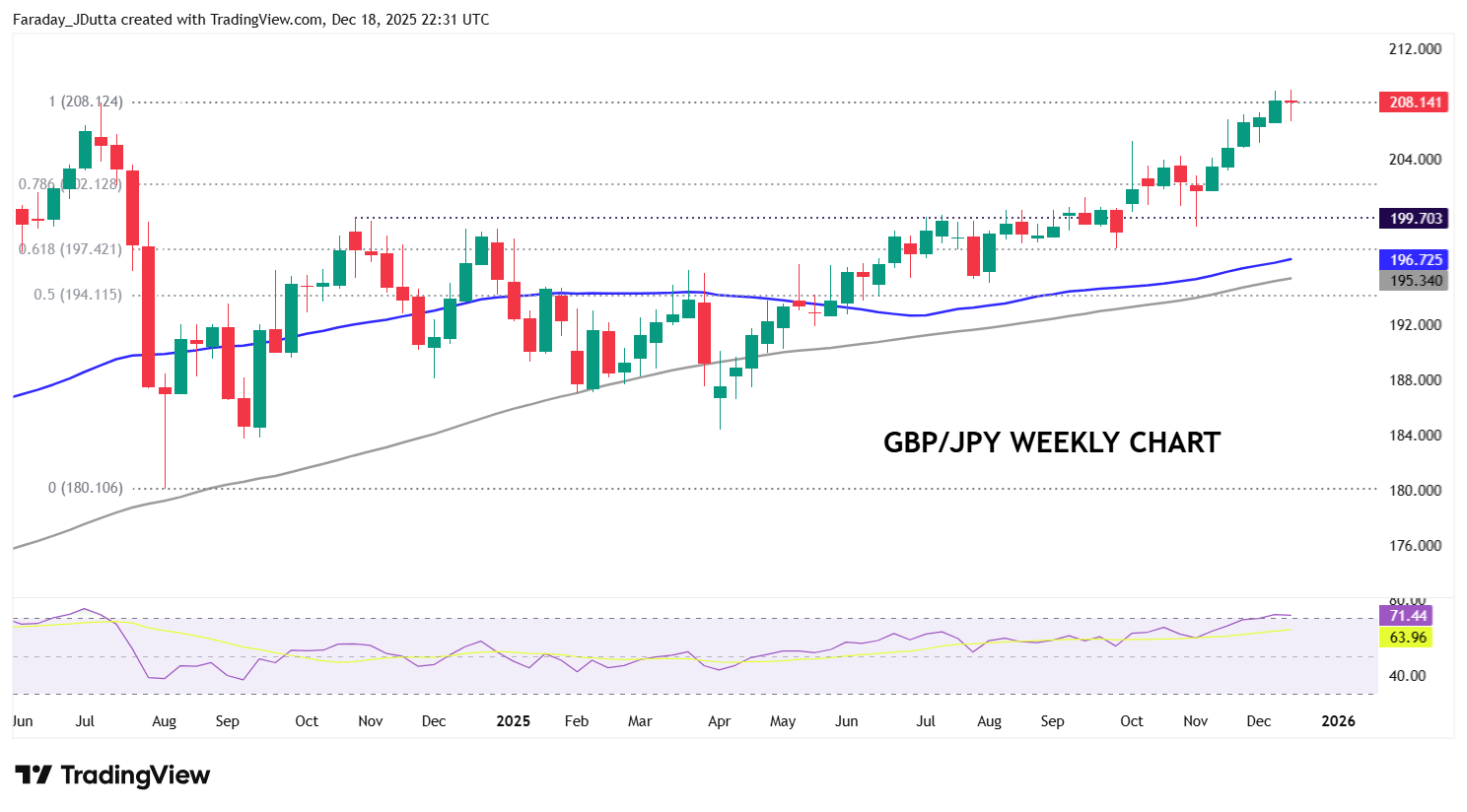 This heavily popular and traded currency pair has enjoyed four straight months of gains and likely six-week win streak. That’s the most since a seven-week run in mid-2023. We highlighted the break of 199.70/200 a few months ago as key for more upside. The pop higher went above 205 and saw overbought conditions which were followed by a pause for breath, when prices briefly traded under the 50-day SMA. But bullish momentum returned after a one-day dip below 200 again, that saw strong buying up to 206 and now more recently 208. The long-term high from July 2024 is 208.12. Above this is the July 2008 top 215.89 as the next major peak.