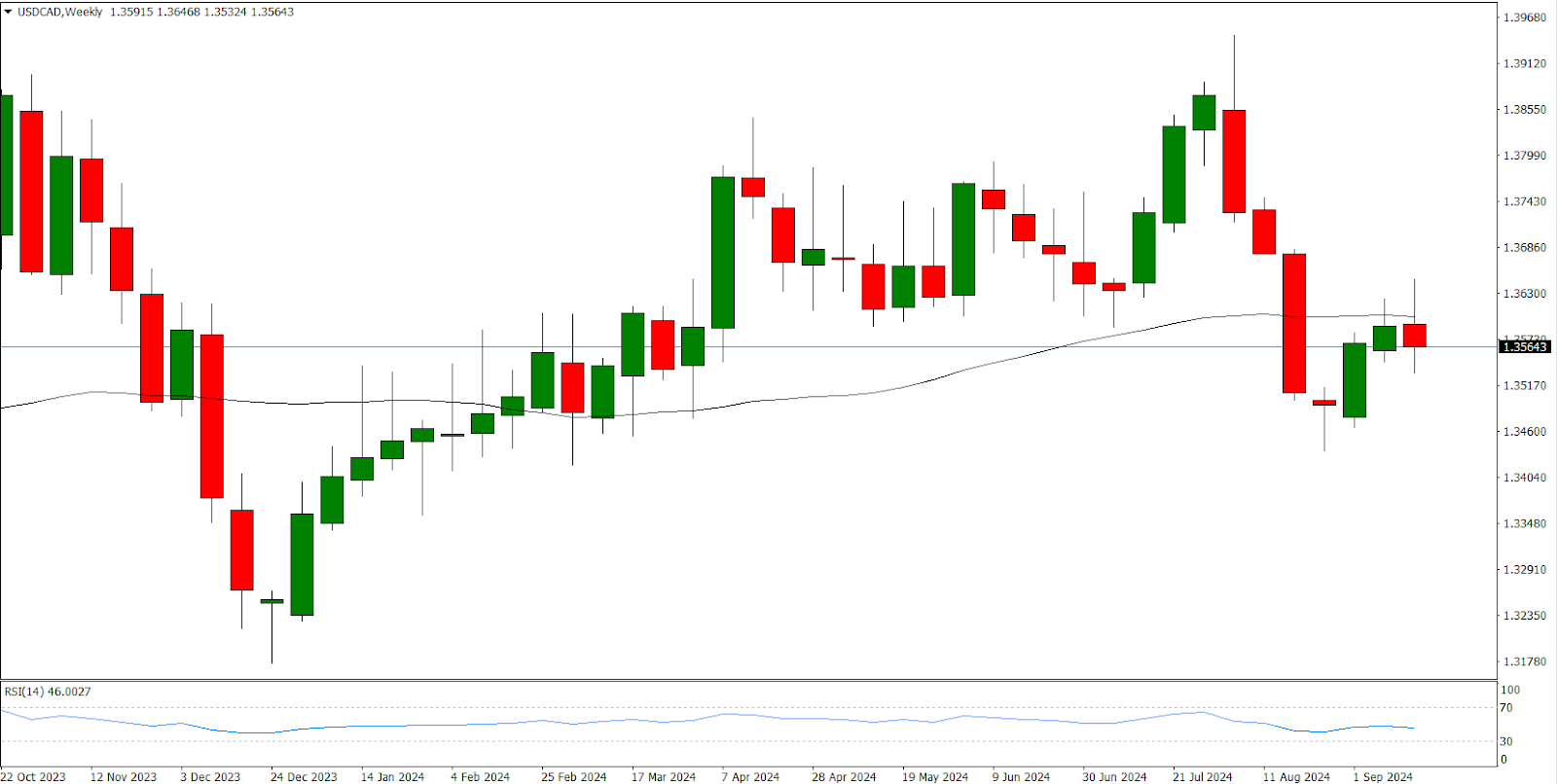 Last week, based on the weekly chart above, USDCAD shed 27 pips, ending with a weekly high at 1.36469 after the Fed’s 50bps cut. The pair currently trades below the 50-period MA after rejecting it, signaling potential downside continuation. If the 50-MA rejection holds, downside pressure may build, while a failure could suggest further upside momentum. The news event will be released on the September 27, 2024 at 14:30.