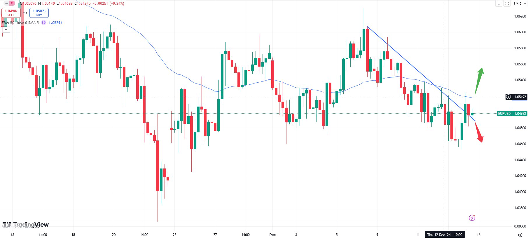 The EURUSD 4h chart shows that the recent falling trend has been broken to the upside. Especially a break of the 50- moving average trendline at about the 1.0518 area might hence open up room to the upside. Then, the market might be ready to test the 1.0580 resistance zone. On the other hand, traders might also be keen to use initial weakness of the Dollar to open up fresh long positions. The market might then resume the trend to the downside again. The interest rate decision will take place on Wednesday, 18 December at 20:00 CET.