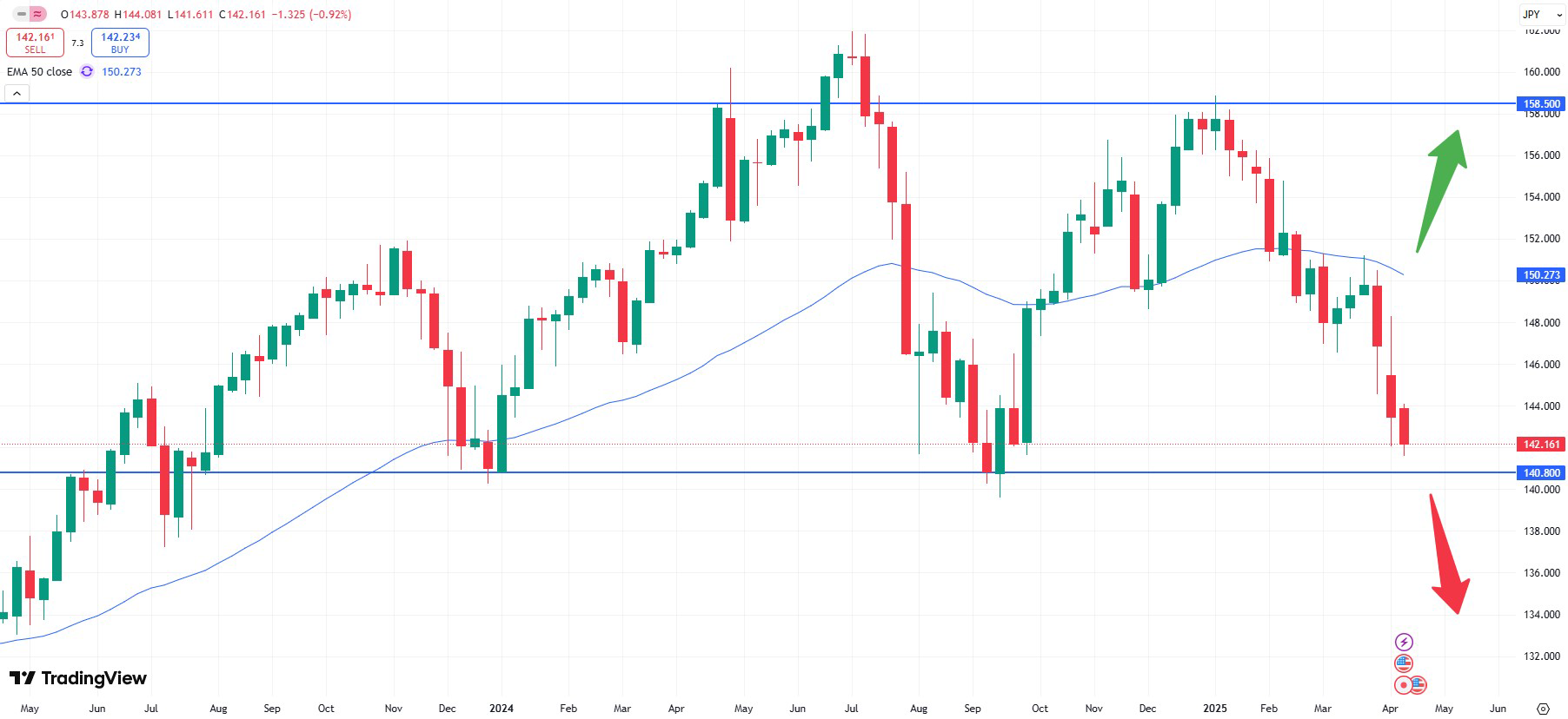 Falling interest rates compared to the US might still give the economy some advantage, however, US trade wars and the war in the Ukraine continue to disappoint. Yet, the German DAX seems to response positive for now. Unless the index falls to lower levels again the upside should still be intact.