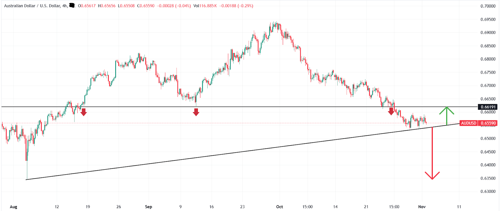 Last week, AUDUSD broke the 4HR support at 0.6620, currently around 0.6560, impacted by strong US economic data and Trump election expectations, while the RBA’s trimmed mean CPI rose to 3.5%. Looking ahead, a confirmed downside breakout at 0.6540 could target 0.6350, influenced by upcoming Australia and Fed interest rate decisions; however, a failure to break could see a rebound to 0.6620.